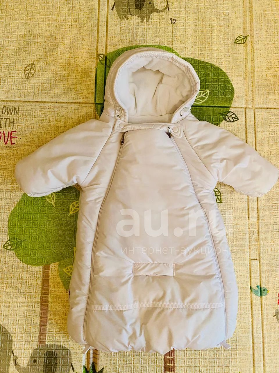 Демисезонный конверт для новорождённых Cherry Mom размер 56-62, подойдёт для выписки, использования в коляске и автомобиле ( есть прорезь для ремня безопасности). Материал верха - плащевая ткань, внутри гипоаллергенный утеплитель холлофан плотностью 250 гр/м2. Внутри очень мягкая флисовая подкладка. Рукавички с отворотами, по периметру капюшона резинка с фиксатором. Состояние отличное, использовали на прогулках в коляске, цвет чистый белый, ничего лишнего, подойдёт и девочке и мальчику.