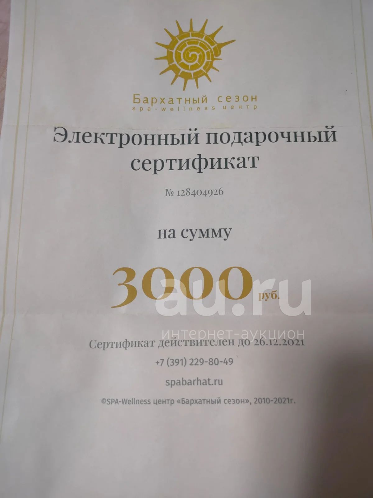 Сертификат в СПА на 3000 рублей