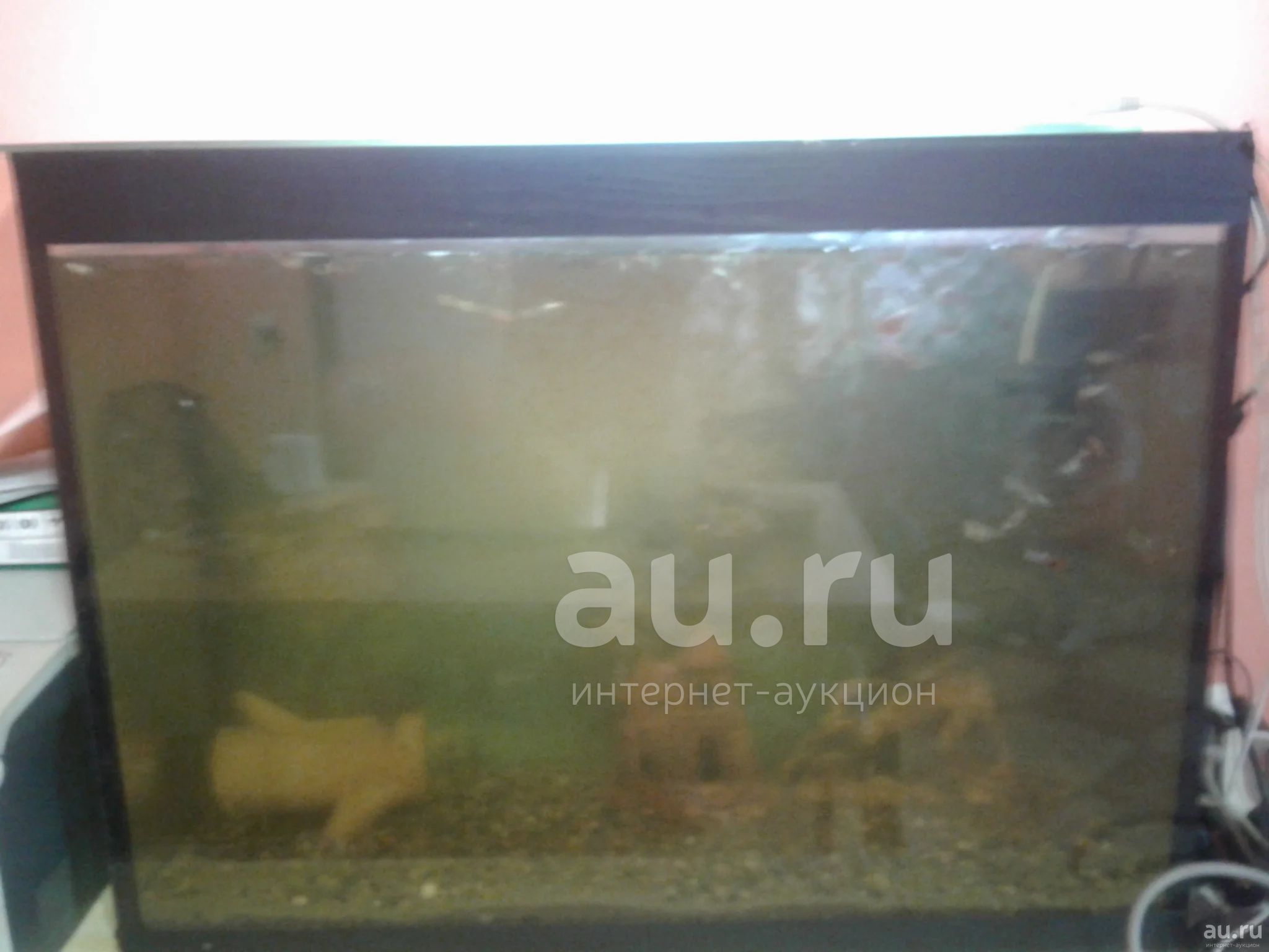 длинна 73см высота 55см ширина 32см. грунт мелкая галька. штук 30 гуппи и 3 сомика. фильтр. в сумке искуственный камень и маленький фильтр остатки от маленького аквариума. запущин надо будет мыть