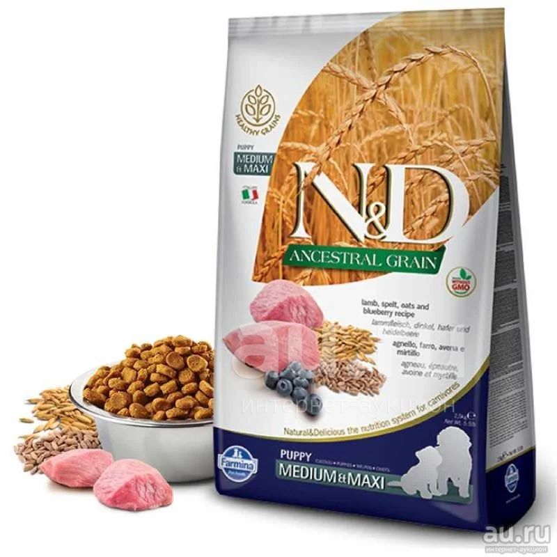 N&D ANCESTRAL GRAIN (раньше назывался N&D Low Grain) – это линейка кормов, в которой используются неселекционируемые злаки. Их потребление улучшает инсулиновую реакцию и снижает нагрузку на поджелудочную железу. Корма очень хорошо подходят для собак средних и крупных пород. Полнорационный корм для щенков средних и крупных пород собак.