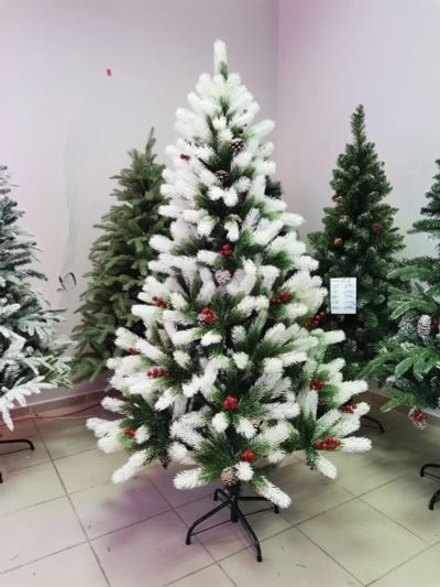 Зеленая ель с литыми иголками ягодами и шишками (P-6) 180см