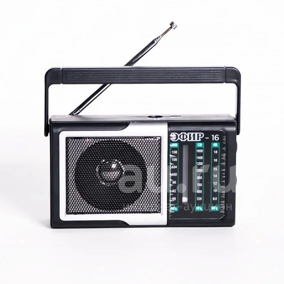 ОПИСАНИЕ. Радиоприемник Эфир-16 – это недорогой радиоприемник, который станет прекрасной альтернативой китайскому "no name". Целевая аудитория данного радиоприемника – это дачники, любители природы, городские жители, подойдет как пожилым, так и молодым людям. Корпус выполнен в черном цвете, его масса в упаковке составляет не более 220гр. Эфир-16 имеет аналоговый тип тюнера, обеспечивает сигнал в диапазонах УКВ/СВ/КВ с частотой УКВ (88-108)МГц / СВ (530-1600)КГц / КВ (8.0-18.0)МГц соответственно, наличие 1-го динамика с мощностью 3Вт. Радиоприемник работает через блок питания 5В, батареек АА*2шт, либо от аккумулятора емкостью 500мАч. Размер изделия составляет 140х41х76мм, телескопическая антенна, разъем под наушники. Радиоприемник отличает простота и удобство в использовании, универсальное питание. В комплектацию радиоприемника входит: само устройство, инструкция полностью на русском языке, цветная упаковка и гарантийный талон. Товар сертифицирован, гарантия 12 месяцев. ТЕХНИЧСКИЕ ХАРАКТЕРИСТИКИ. Тип тюнера: аналоговый Диапазоны: УКВ/СВ/КВ Частоты для каждого диапазона: УКВ (88-108)МГц / СВ (530-1600)КГц / КВ (8.0-18.0)МГц Автонастройка в FM диапазоне: нет Кол-во динамиков: 1 шт, монозвук Мощность динамиков: 3Вт Питание: От сети: Блок питания 5В Батарейки: АА*2шт, нет в комплекте Аккумулятор: 500мАч Размер: 140x41x76