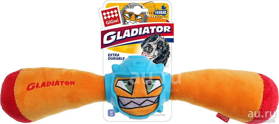 GiGwi игрушка для собаки. Гладиатор в резиновом шлеме-палка с пищалкой(оранж) 41см