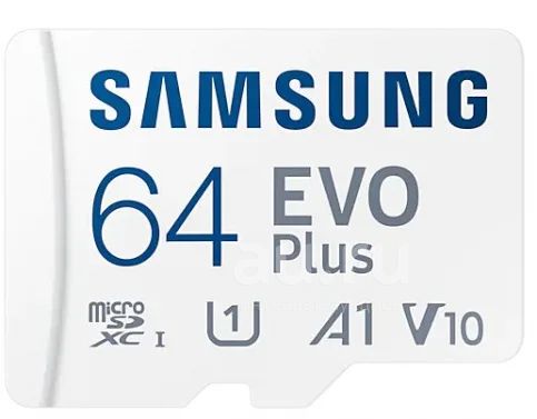 Карта памяти microSD Samsung EVO Plus 64 Gb | Скорость записи до 20МБ/с | Скорость чтения 130 МБ/с | Class 10 | MB-MC64KA/RU | переходник SD
