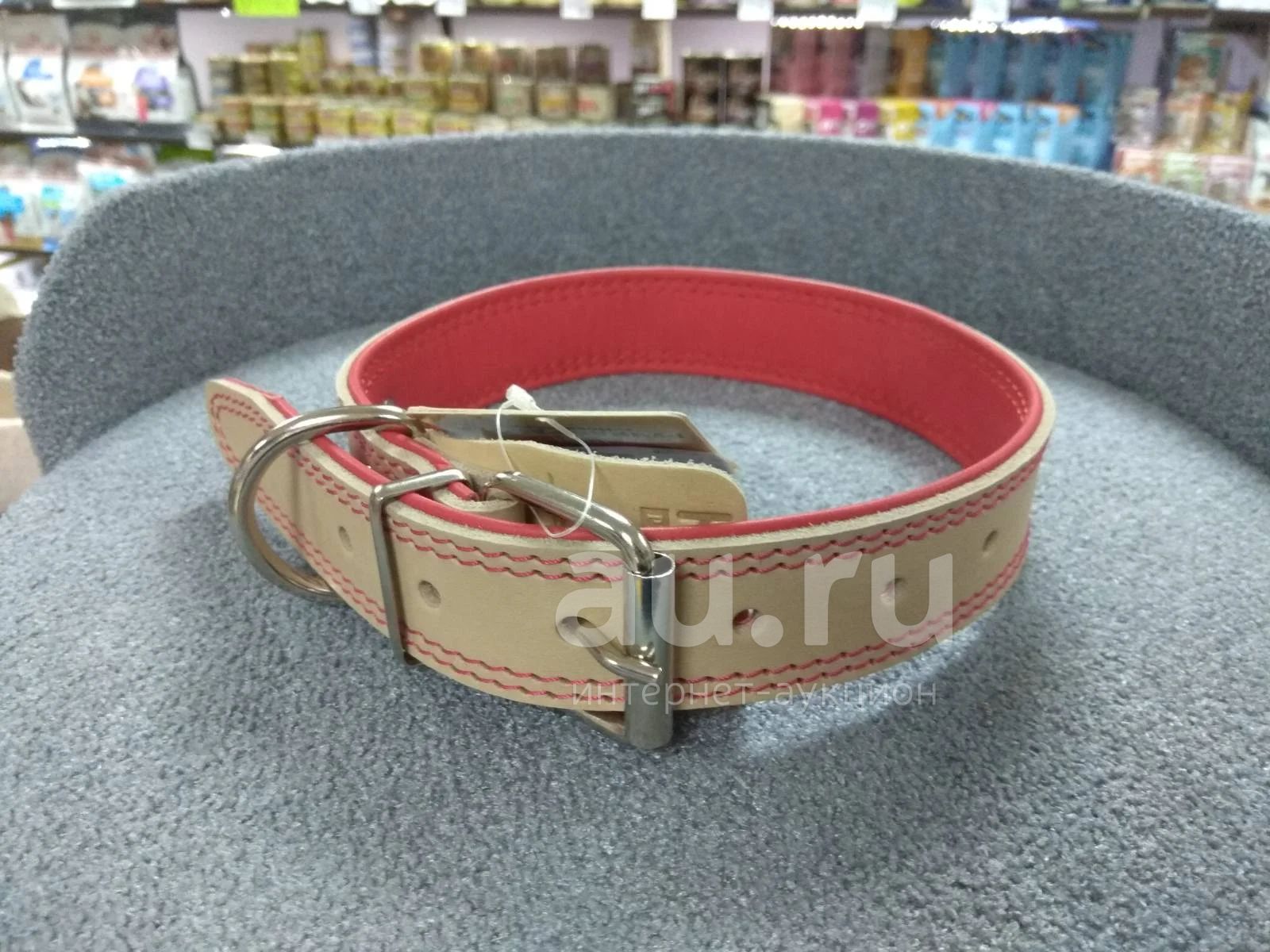 Трехслойный ошейник из натуральной кожи, края в загибку, проклеен и прошит декоративной строчкой, полукольцо посередине.