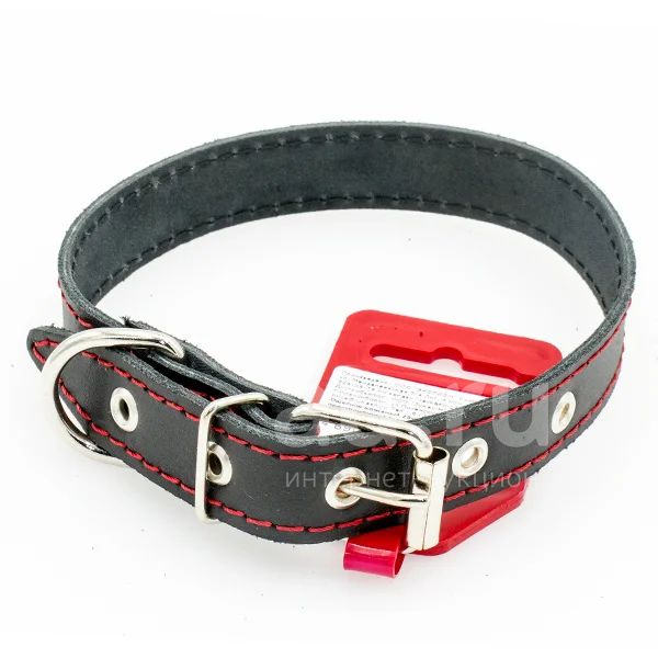 Однослойный ошейник из натуральной кожи, прошит декоративной строчкой, полукольцо посередине.