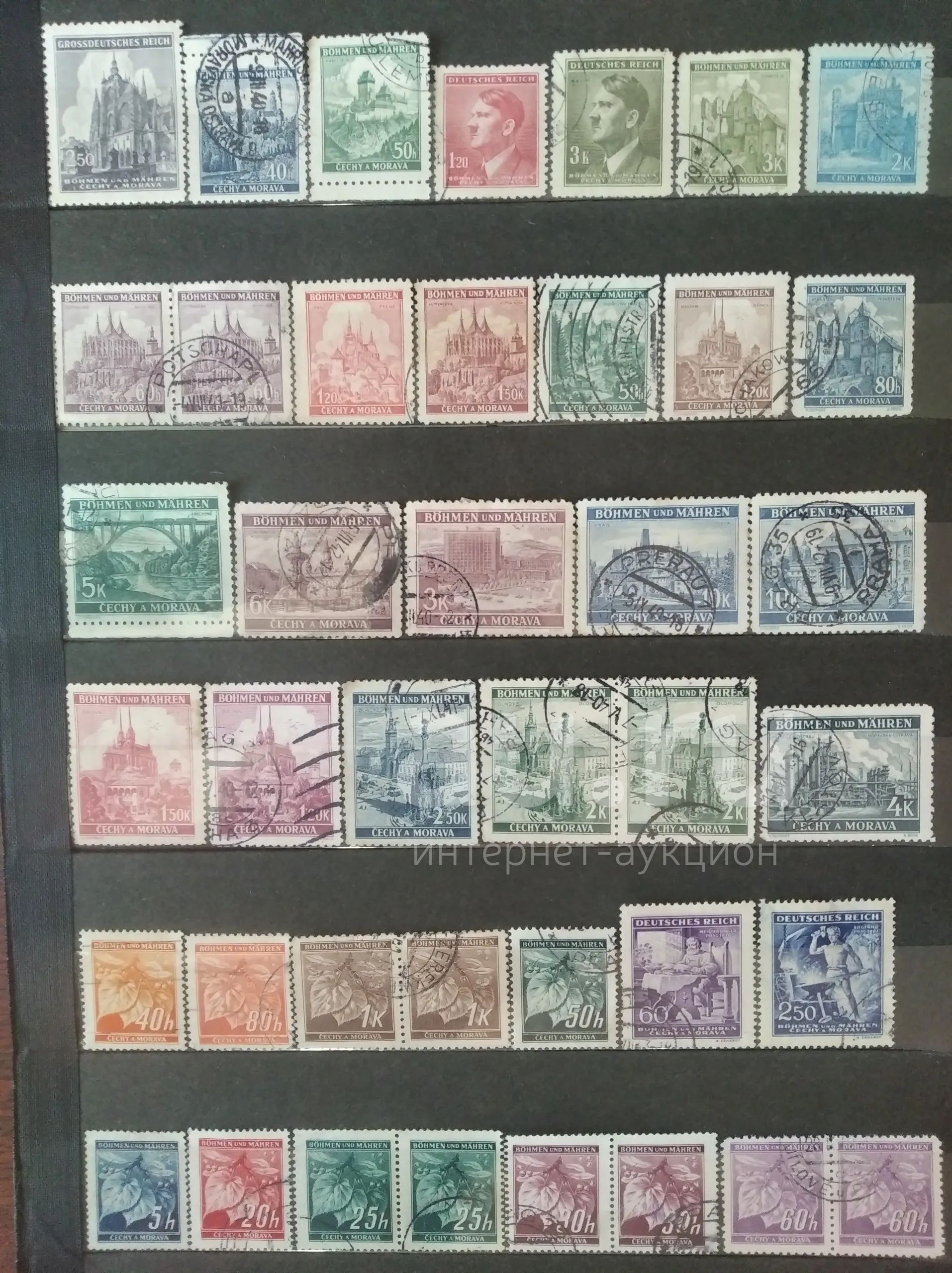 Оккупация Чехословакии (Богемия и Моравия) 40 марок, прошедшие почту.