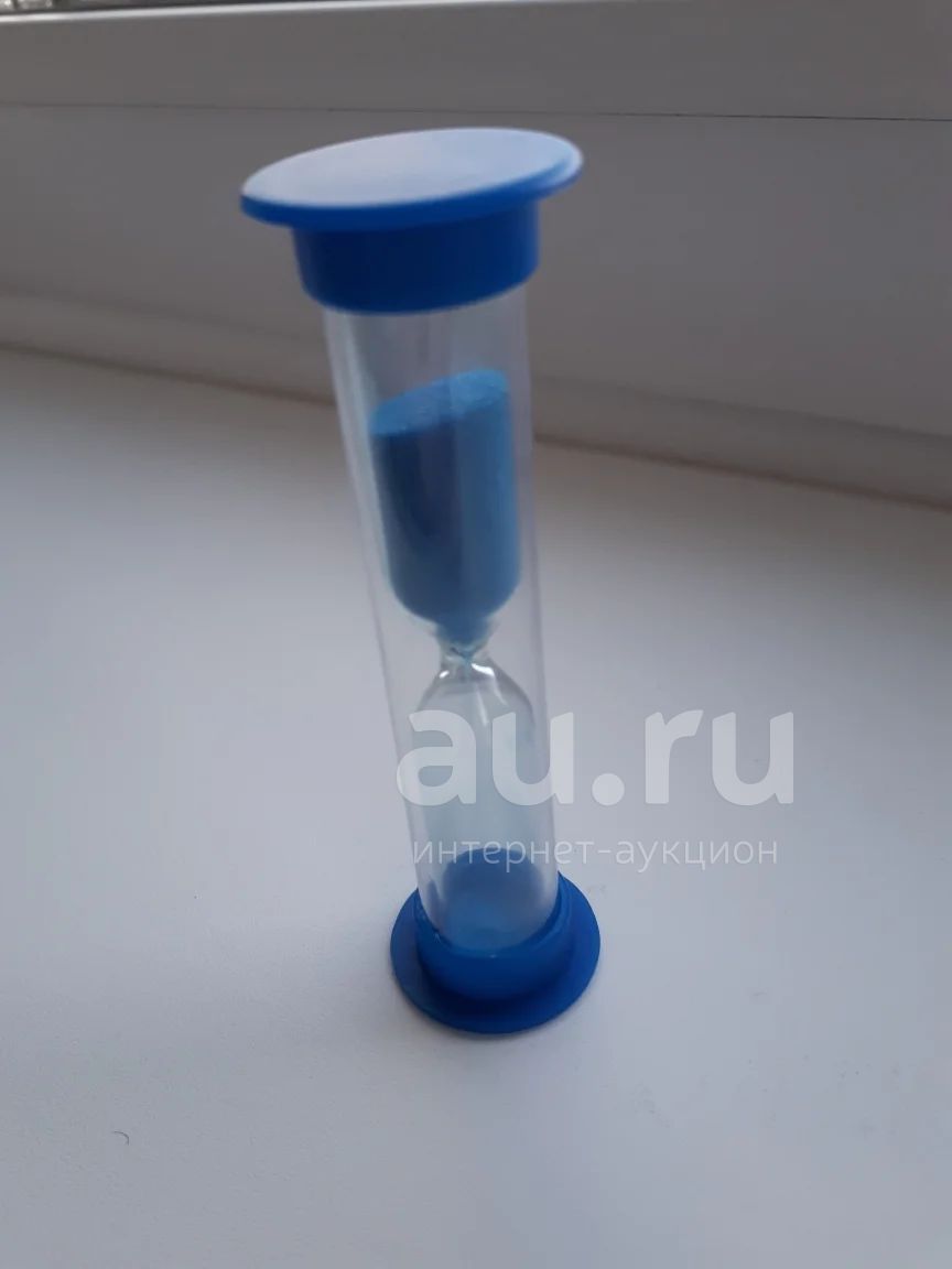 Часы синего цвета, высота 8,8 см. Рассчитаны на 5 мин.