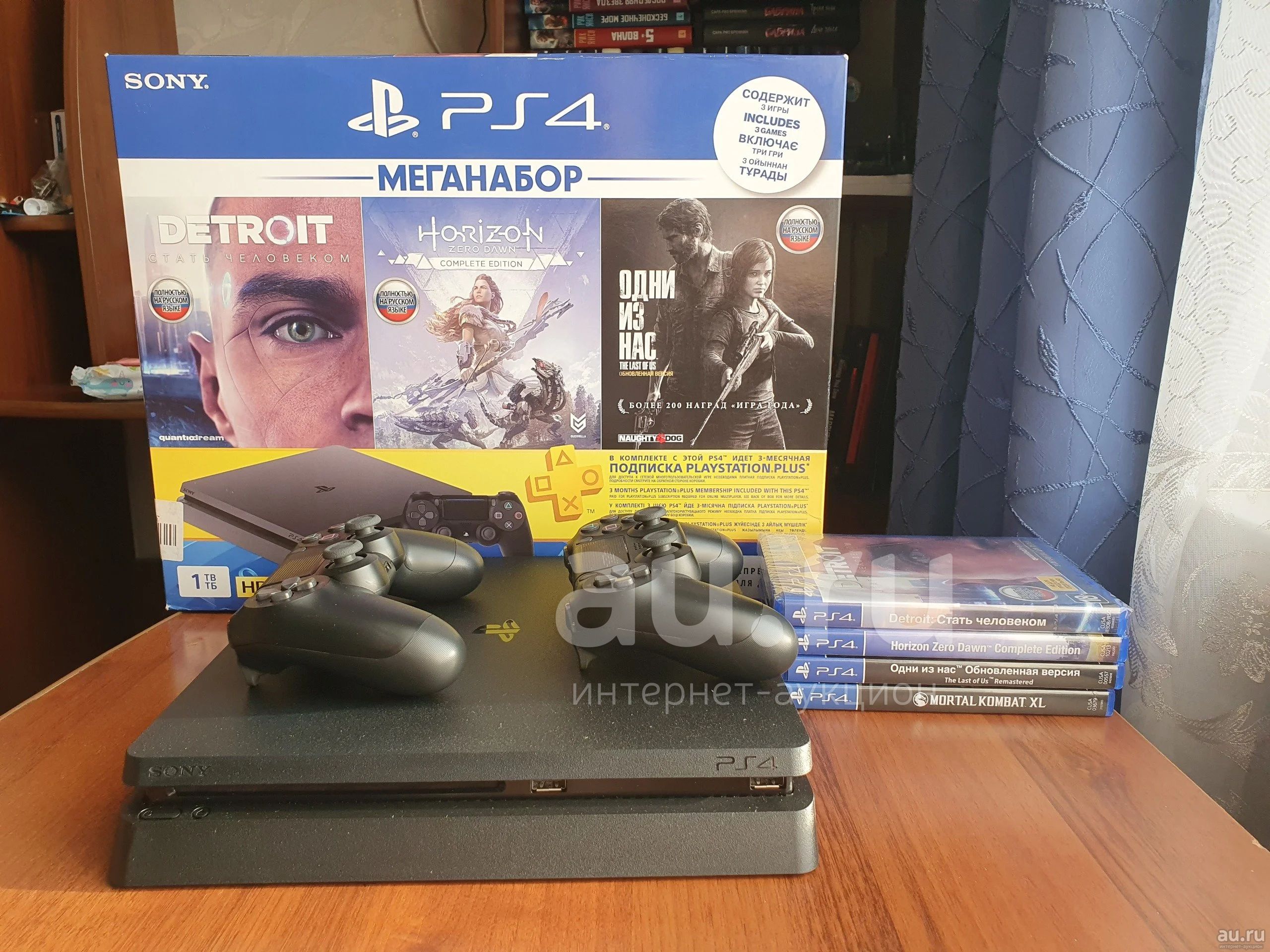 PS4 Slim 1tb 2 джойстика 4 игры