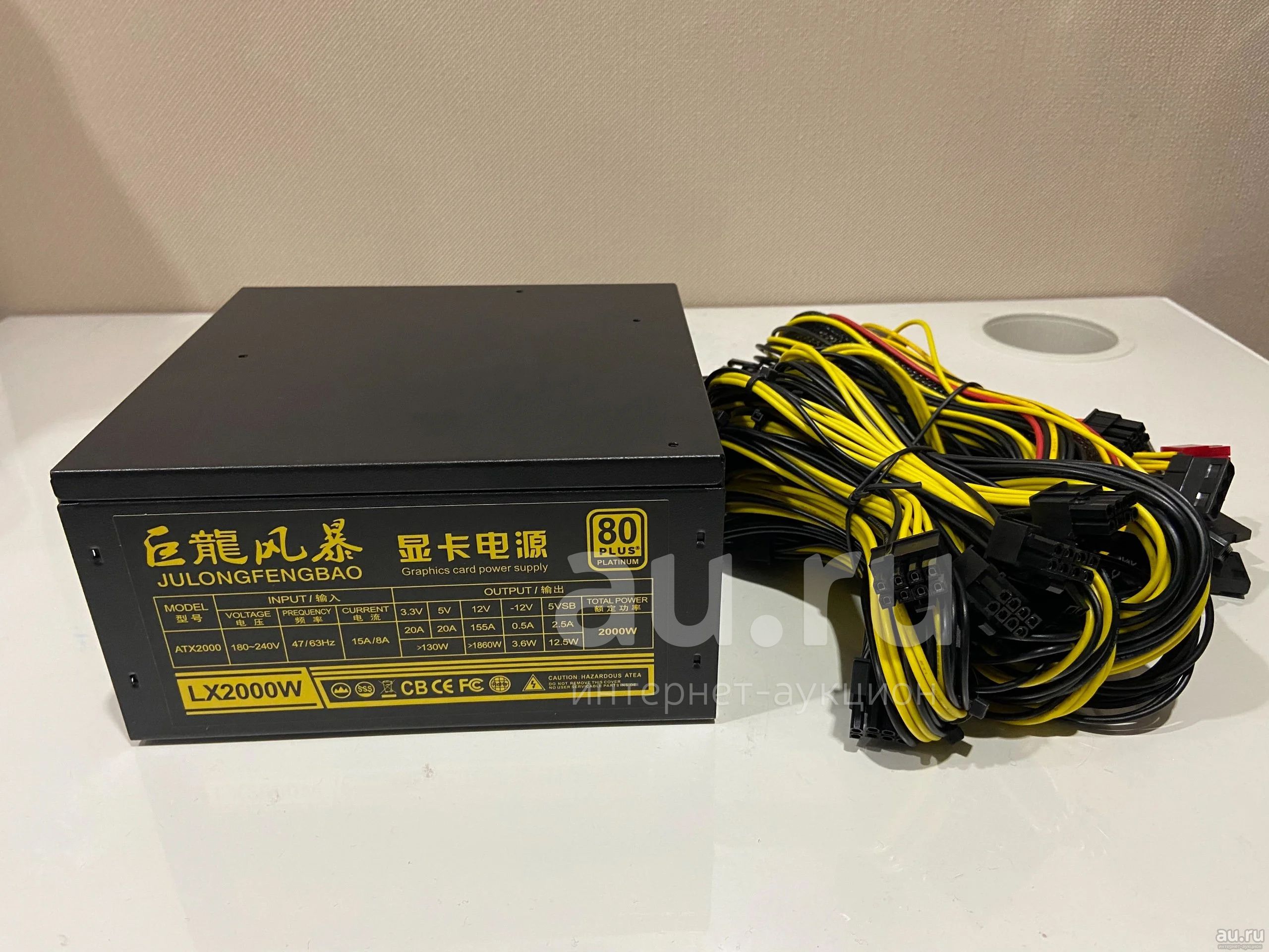 🔘Блоки питания для майнинга lx1800w 1800 W 1800w Julongfengbao или lx2000w 2000 W 2000w8 линий по 2*6+2 pin8 коннекторов sata4 molex1 на CPU 4+4 pin1 на мать 24 pin