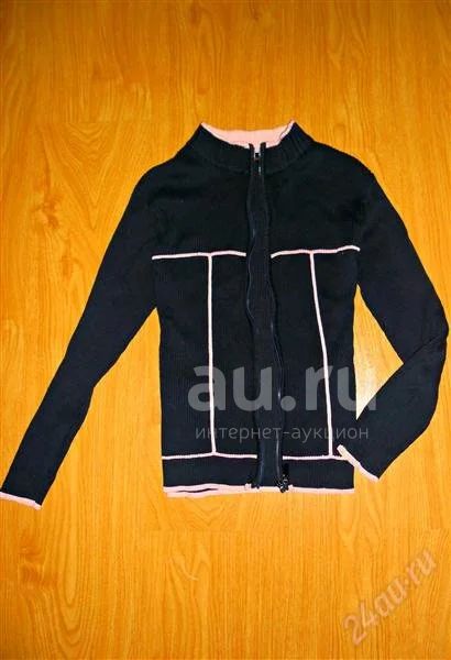 Кофта синяя с розовыми отделками.