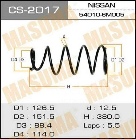 Пружина подвески усиленная 15% жесткости masuma front wingroad whny11 CS-2017