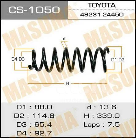 Пружина подвески усиленная 15% жесткости masuma rear markii jzx110 CS-1050