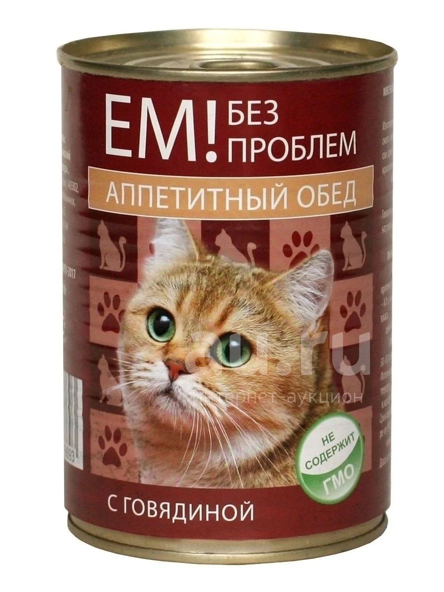 ЕМ БЕЗ ПРоБЛЕМ корм для кошек Аппетитный обед с говядиной 410гр