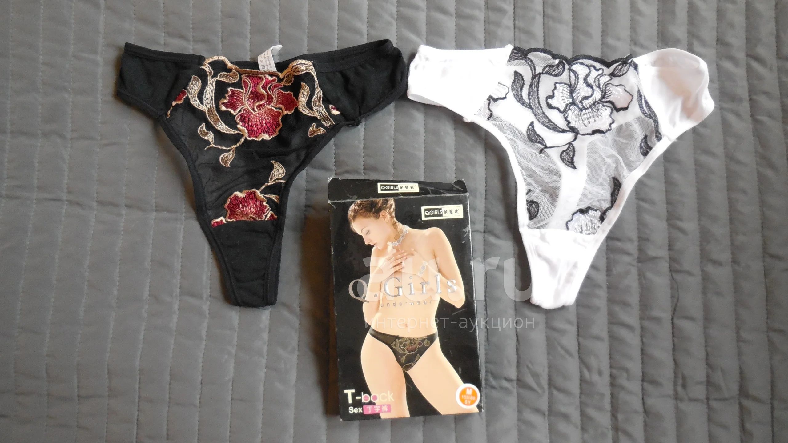 Трусы женские стринги набор из 2 штук черные+белые размер М 155/80 (лот №11)
