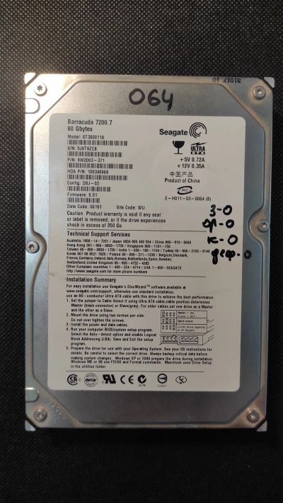 надежный жесткий диск seagate st380011a (80gb, 7200 rpm, 2 mb, ide) , без бэд блоков, смарт в порядке.
