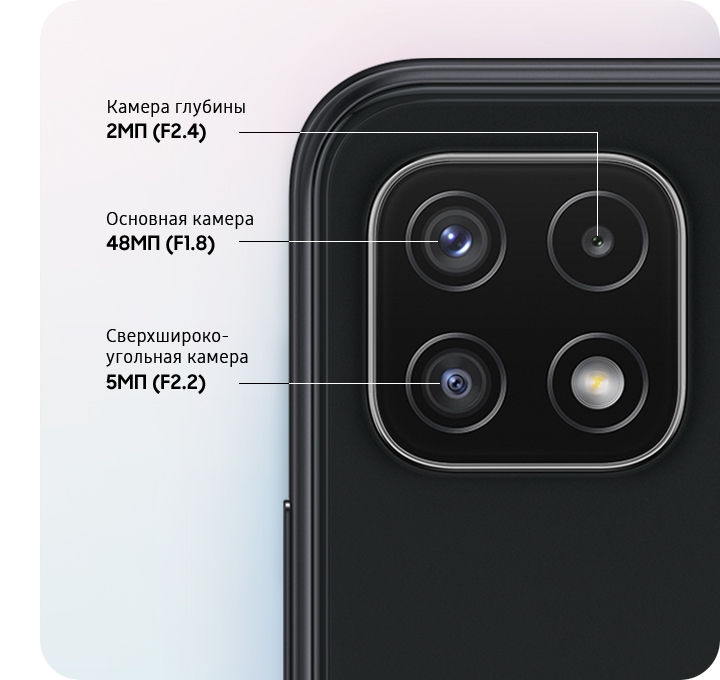 Мягкие пастельные цвета Galaxy A22s 5G гармонично впишутся в любой образ, а бархатистая текстура корпуса обеспечит мягкий тактильный контакт. Выбери свой Galaxy: Мятный, Белый или Серый.