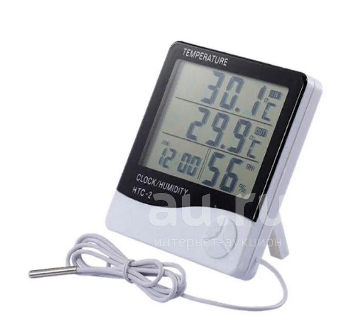 Термометр двойной, гигрометр, часы, будильник - HTC 2