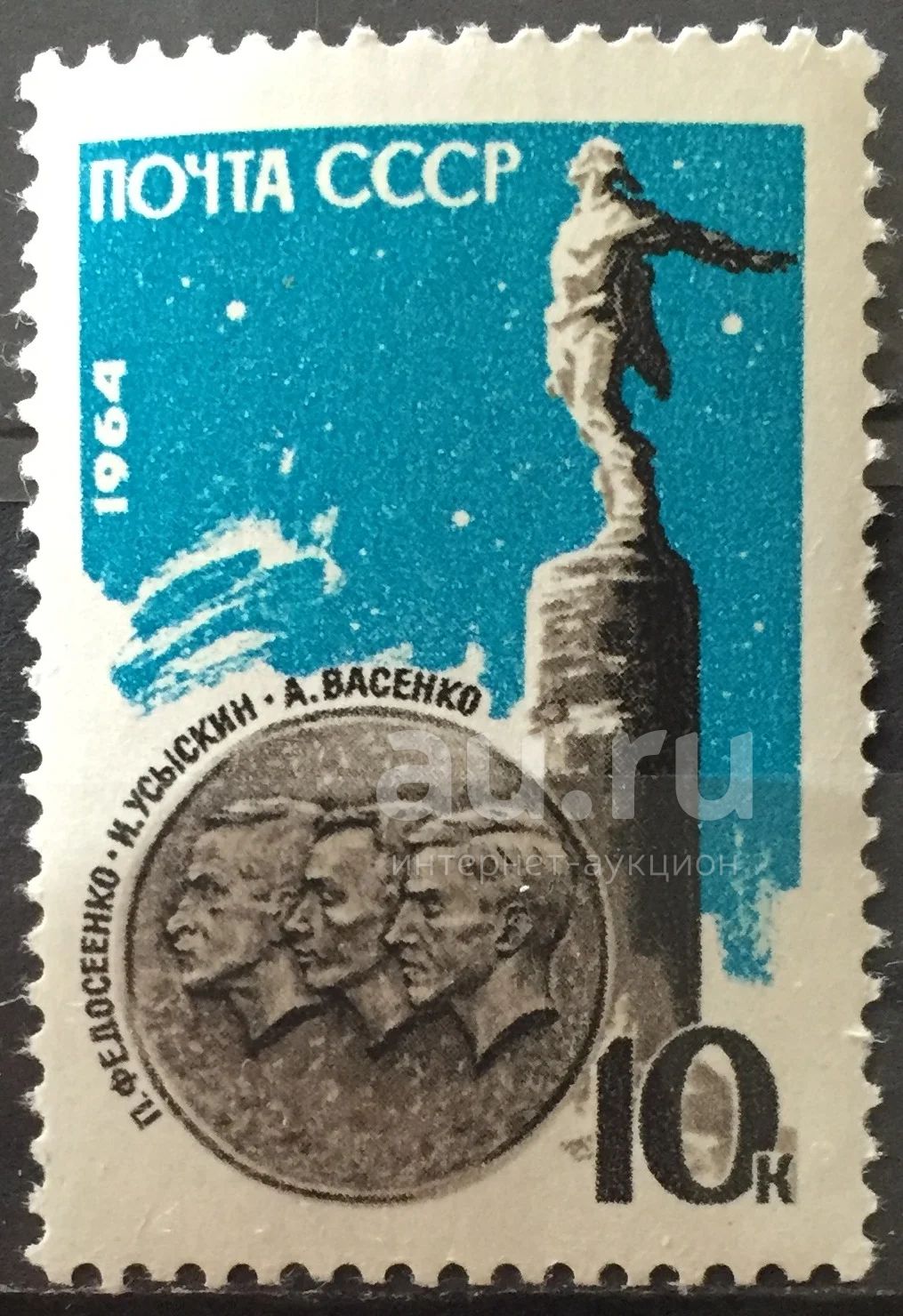 Марка СССР - Памяти советских стратонавтов (1964 г.)