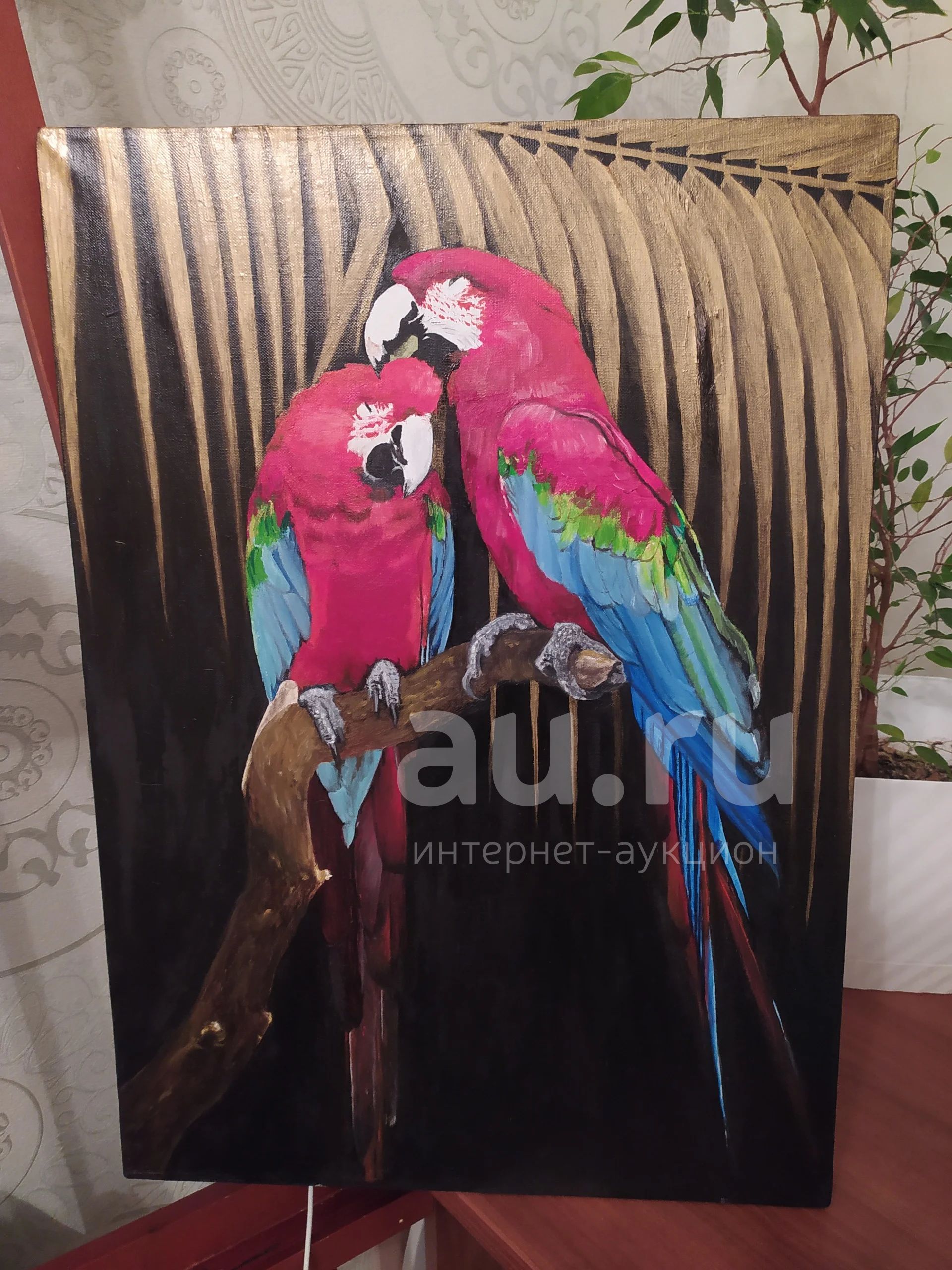 Творение моё,с чистым посылом и на счастье❤️ Попугаи Ара как символ любви в этом мире,создают пары на всю жизнь, будет прекрасным подарком на свадьбу,на годовщину как символ преданности и верности🙏🏻 будет классно смотреться в интерьере лофт, а так же в комнатах в восточных стилях, в Африканском и так далее. Думаю вы сами поймете куда она впишется😉 вживую смотрится очень красиво) материалы: холст, масло (ветка пальмы выполнена золотой краской, приложение сильно съело качество фото, приезжайте, смотрите)