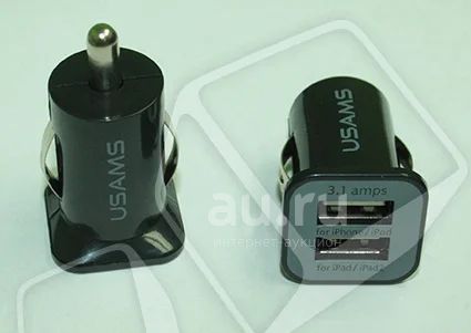 Автомобильное зарядное устройство USB USAMS ( тех.упак., 10W, 2 порта ) Черный