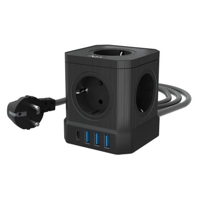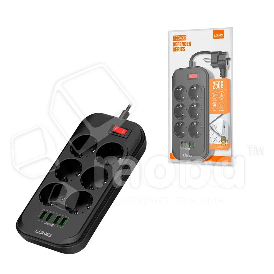 Сетевой фильтр с портами LDNIO SE6403 (6 розеток + 4 порта, 2 м.) Черный