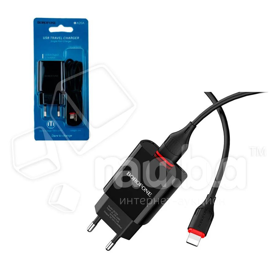 Сетевое зарядное устройство USB Borofone BA20A (10.5W, кабель Lightning) Черный