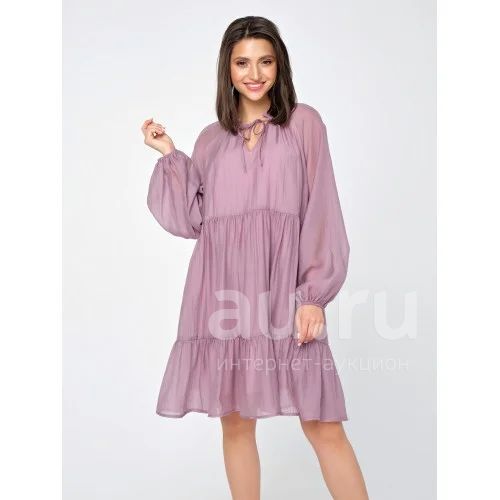 Платье свободного силуэта. Воротник – стойка с завязками, формирующие бант. Длинный рукав с резинкой по низу. Юбка с ярусами. Важная информация! Фото товара сделано при естественном и искусственном освещении студии, поэтому цвета имеют разные оттенки.