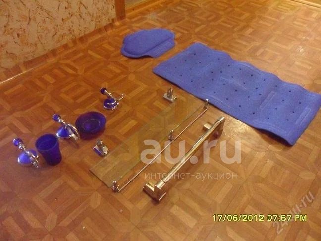 набор для ванны. 7 предметов: стаканчик для зубн. щеток; мыльница; полочка стеклянная; крючок для полотенец; сушка для полотенец; подушка и коврик в ванну резиновые на присосках. состояние хорошее. продается комплектом.