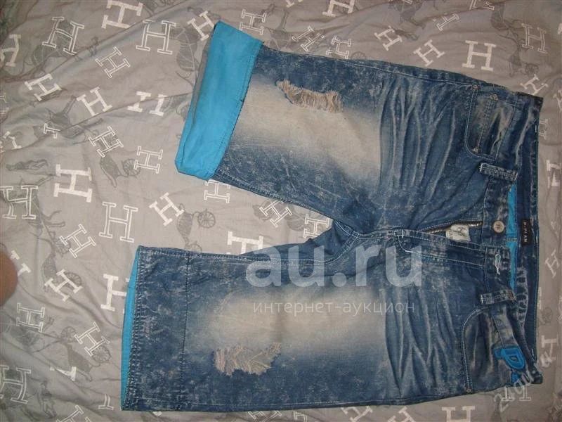 Шорты джинсовые с потертостями и дырками. Размер W35.