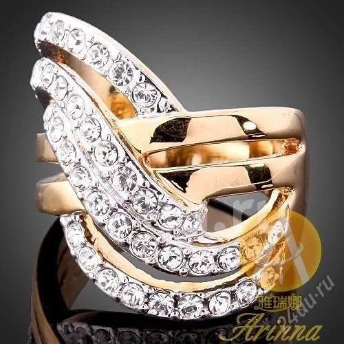 Позолоченное кольцо с кристаллами сваровски (желтое золото)