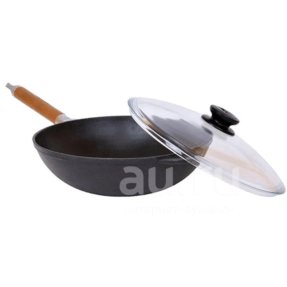 Сковорода WOK чугунная 240 с дерев.ручкой и стеклянной крышкой