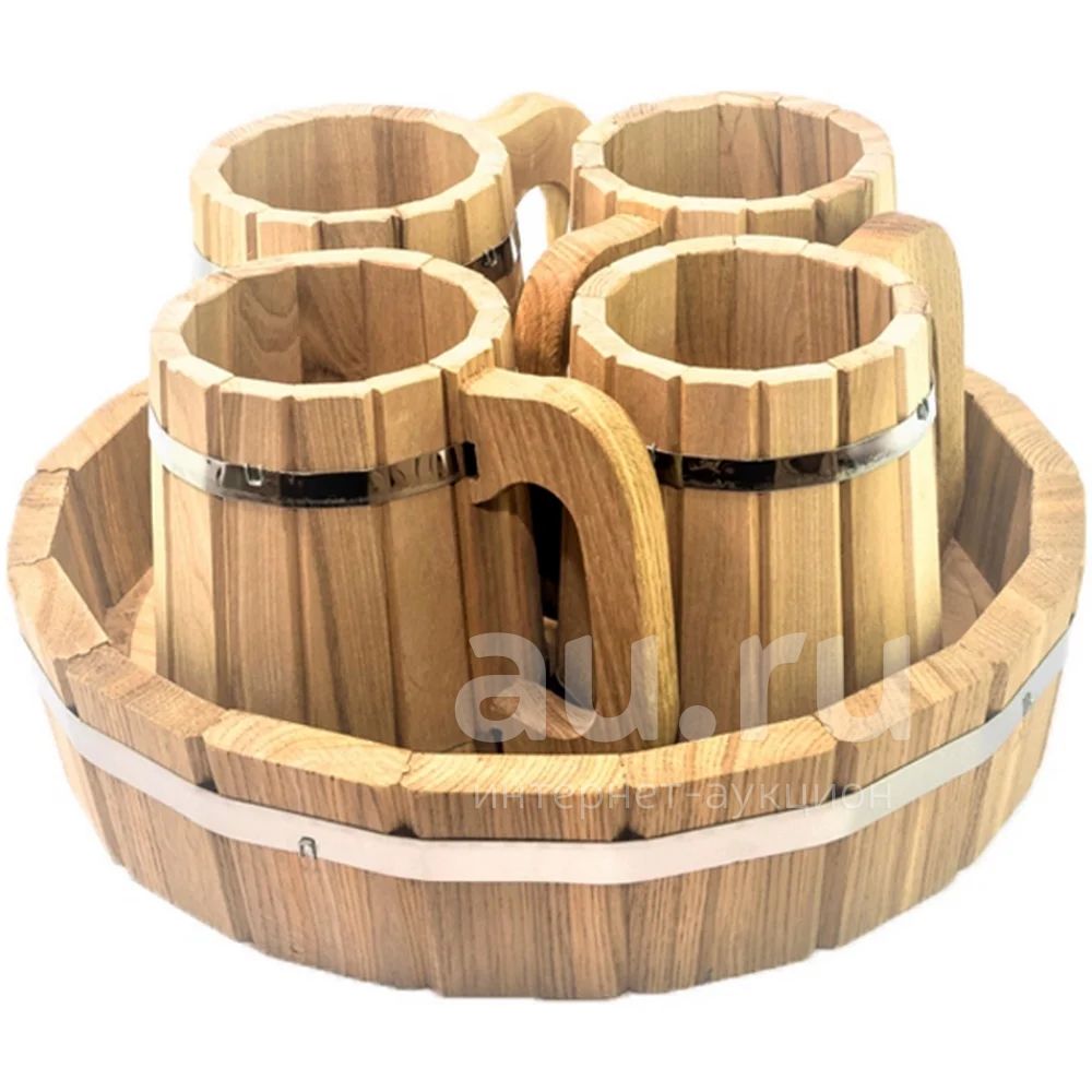 Деревянная кружка — всеми известный, любимый и незаменимый атрибут как классической русской бани, так и современной сауны. Из деревянных кружек особенно приятно пить квас или пиво, выйдя распаренным из парной. Многие любители бани используют кружки не только как ёмкости для различных напитков, но и как черпак для воды и для запаривания небольших травяных пучков. Особенно хороши кружки для приготовления разнообразных ароматических смесей, для разбрызгивание воды на каменку.