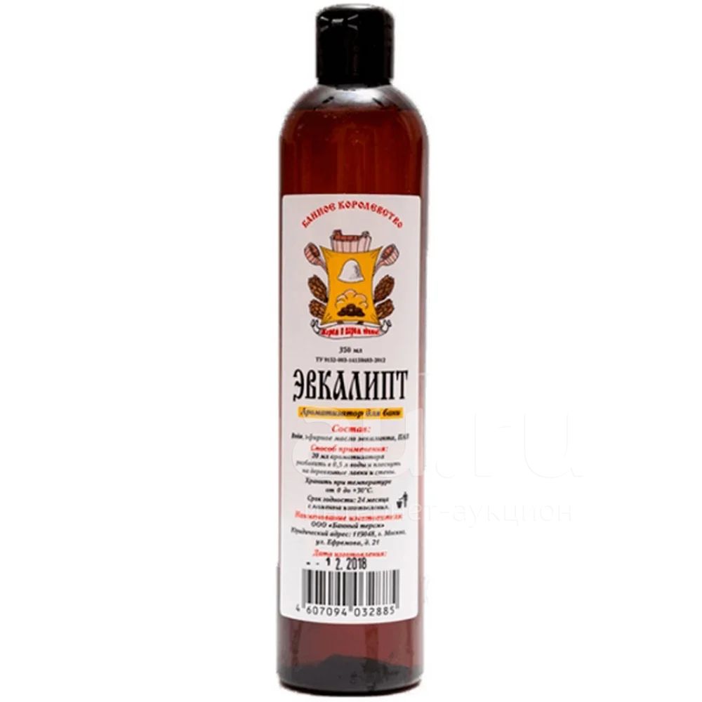 Состав: эфирное масло эвкалипта, вода, ПАВ. Применение: 20 мл ароматизатора разбавить в 0,5л воды и плеснуть на деревянные лавки и стены. Хранить при температуре от -15'C до +30'C. Срок годности 24 месяца.