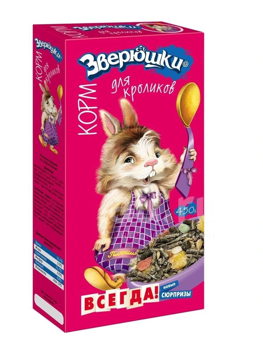 В корме "Зверюшки" есть все, что нужно для здоровой и активной жизни кролика: