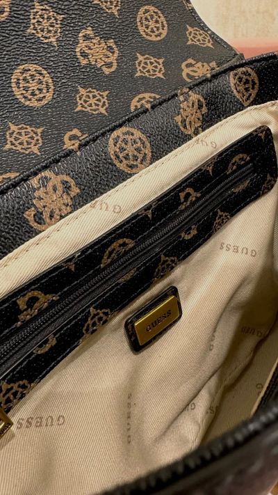Новая сумка GUESS. Цвет "coal/уголь", размер около 28*16 см. Ремешок около 60 см (есть регулировка длины). На магнитных кнопках. Внутри доп. отделение на молнии, в основном отделении 1 карман на молнии и 3 кармашка под мелочи. Съёмный брендированный брелок. Есть несущественные потертость на логотипе спереди (на последнем фото)