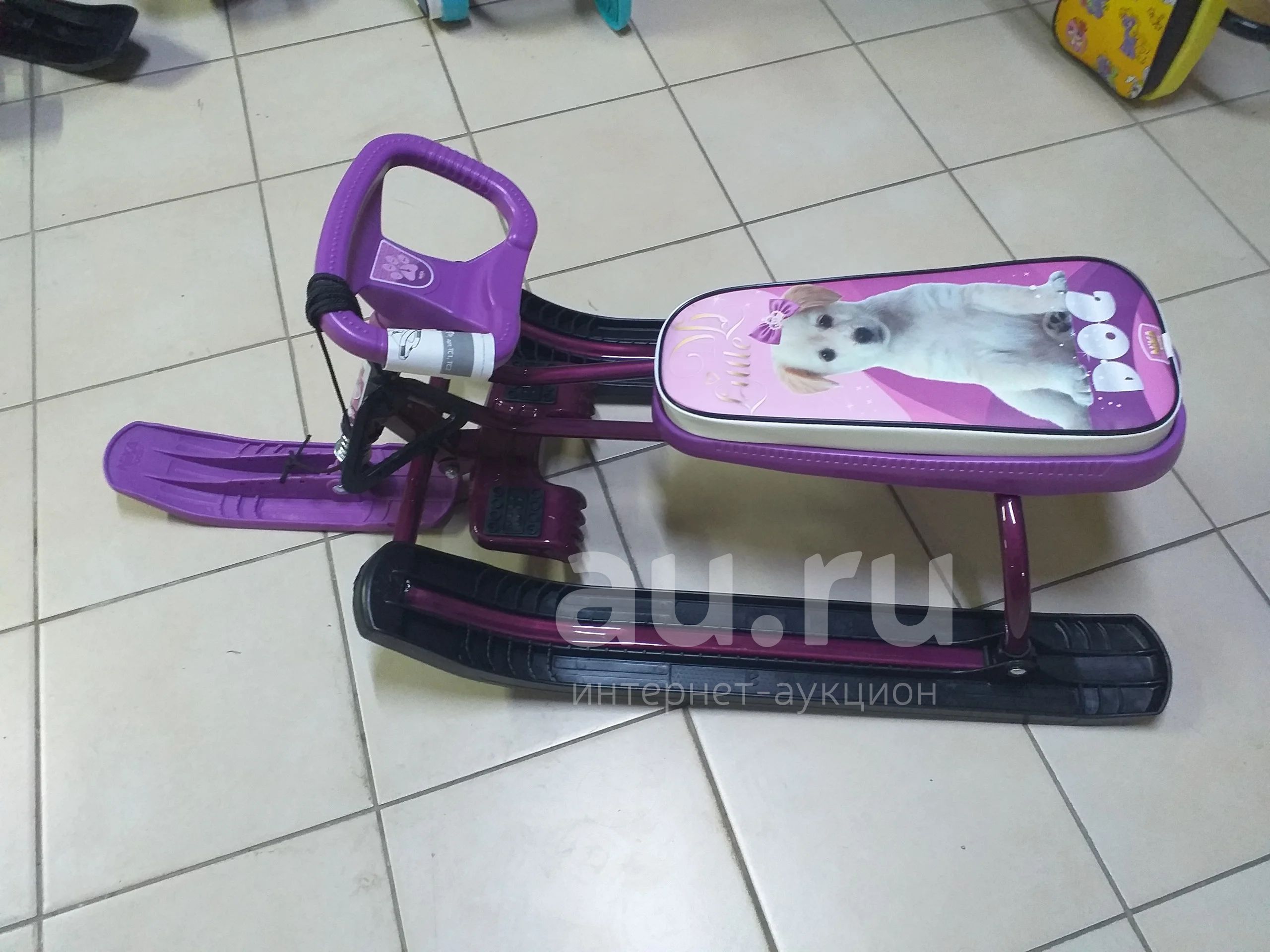 Санки Снегокат фиолетовый с собачкой. Новый. Доставка по городу