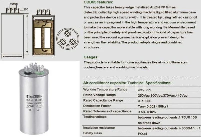 Конденсатор пусковой 50мкф, 450в, CBB65-A, 50*110мм, клеммы
