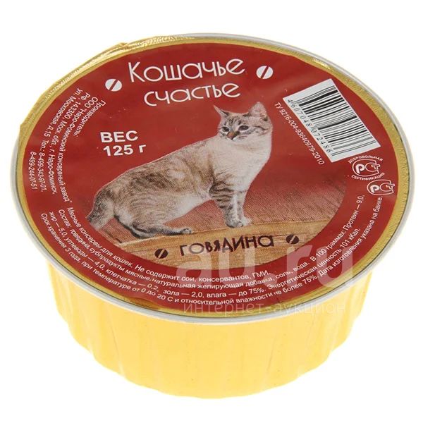 Кошачье Счастье корм влажный для кошек Говядина 125г ламистер