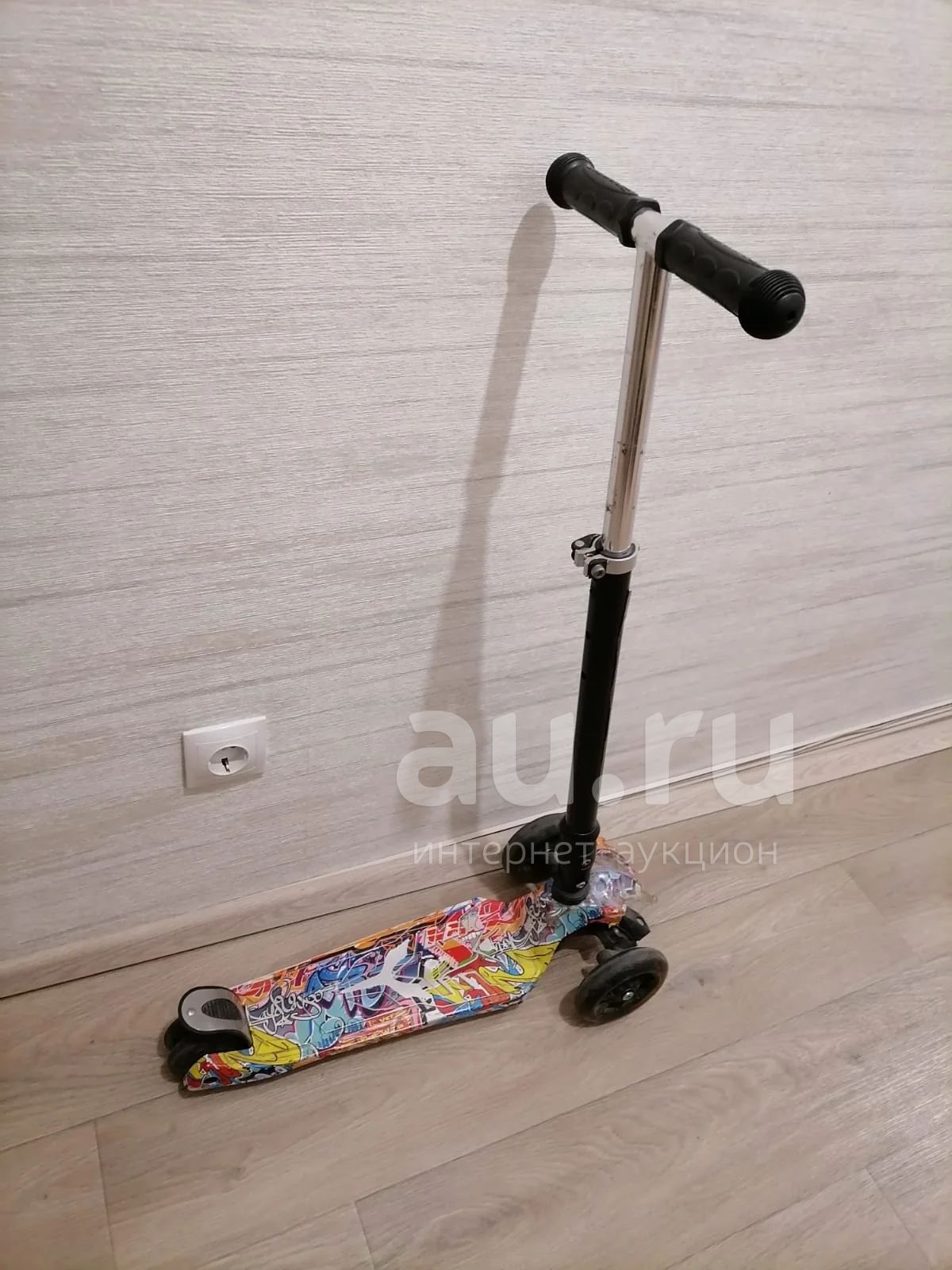 самокат детский , есть жизненные недочеты , на езду не влияет , колеса светятся
