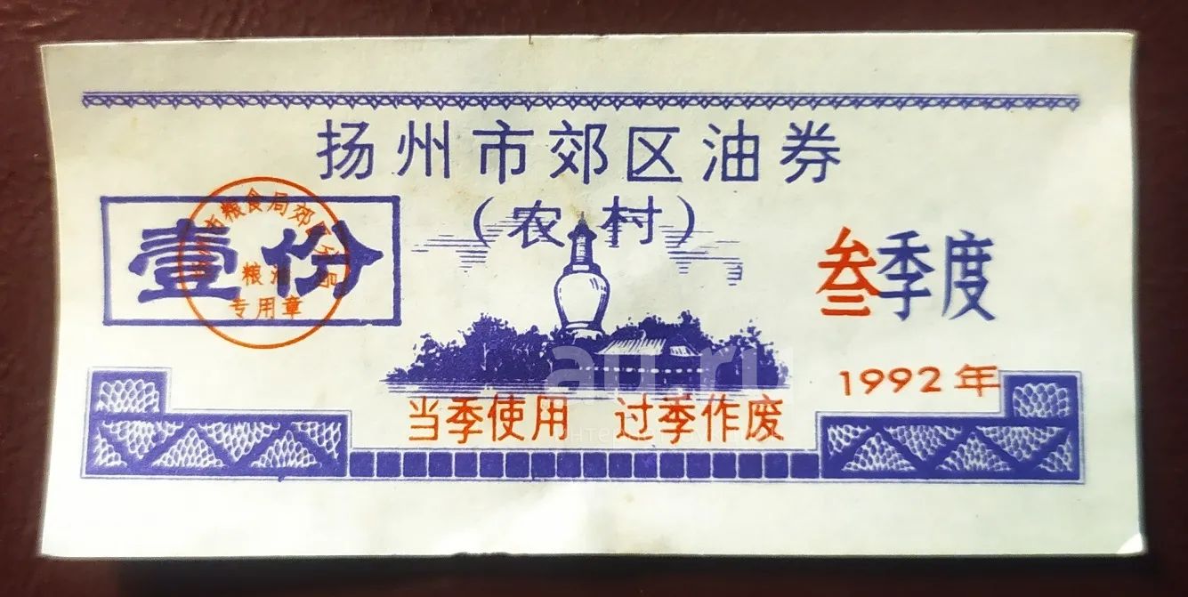 Китай рисовые деньги Талон на растительное масло 1992 Янчжоу (Цзянсу)