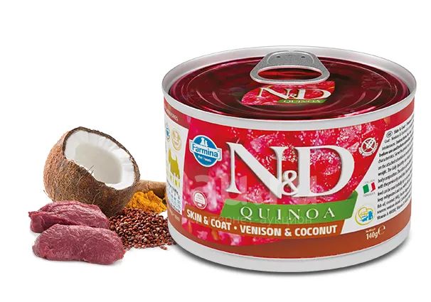 Фармина (Farmina) N&D Dog Quinoa Skin&Сoat беззерновой влажный корм для взрослых собак мелких пород, Оленина, киноа и кокос для здоровья кожи и шерсти, 140гр (Внимательно читаем описание лота)