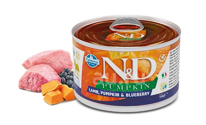 Фармина (Farmina) N&D Dog Pumpkin беззерновой влажный корм для взрослых собак мелких пород, ягненок, черника и тыква, 140гр (Внимательно читаем описание лота)