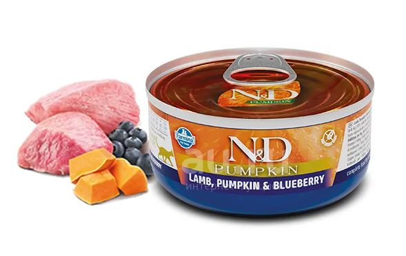 Фармина (Farmina) N&D Cat Pumpkin беззерновой влажный корм для взрослых кошек. Ягненок, тыква и черника, 80гр (Внимательно читаем описание лота)