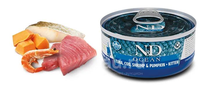 Фармина (Farmina) N&D Cat Ocean беззерновой влажный корм для котят. Тунец, треска, креветки и тыква. 80гр (Внимательно читаем описание лота)