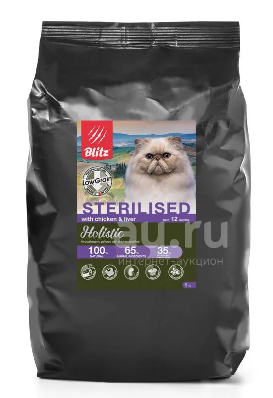 Низкозерновой сухой корм для стерилизованных кошек Blitz Holistic (Блиц Холистик) Курица и печень, 5кг (Внимательно читаем описание лота!)
