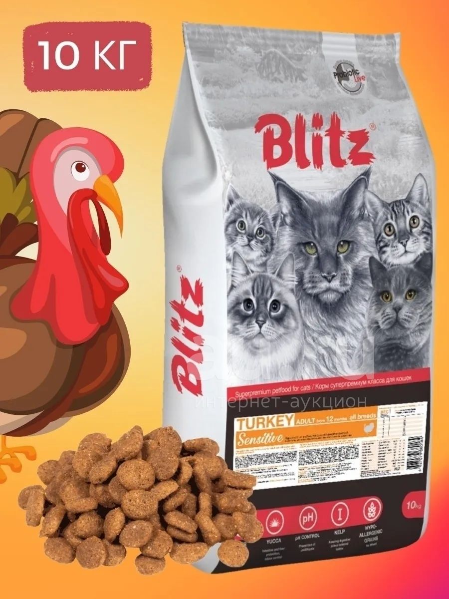 Сухой корм для кошек Blitz Adult (Блиц Эдалт) Индейка, 10кг (Внимательно читаем описание лота!)