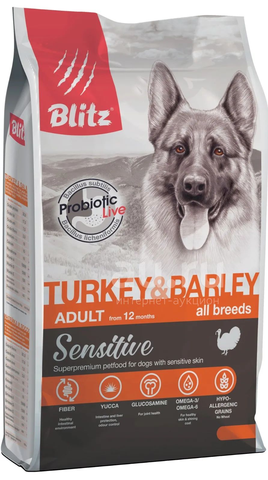 Сухой корм для собак всех пород Blitz Adult (Блиц Эдалт) Индейка и ячмень, 15кг (Внимательно читаем описание лота!)