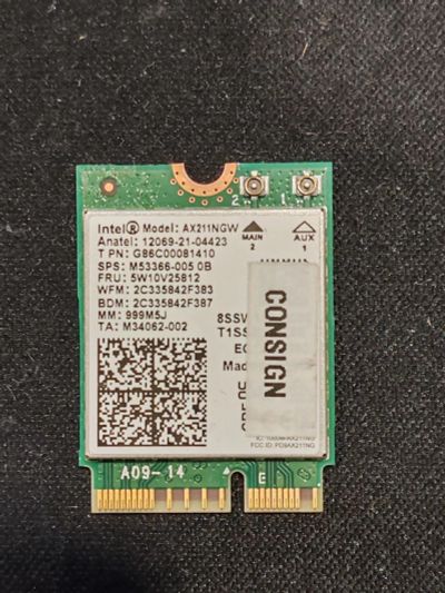 250руб.Wi-Fi модуль, сетевая карта Intel® AX211NGW 2402 Мбит/с, Wi-Fi, 4 (802.11n), 5 (802.11ac), 6 (802.11ax), M.2, WLAN, 2.4 ГГц, 5 ГГц, 6 ГГц, Wi-Fi + Bluetooth 5.1 для ноутбука Gigabyte G5 Hasee Machenike Maibenben Maibenben Thunderobot