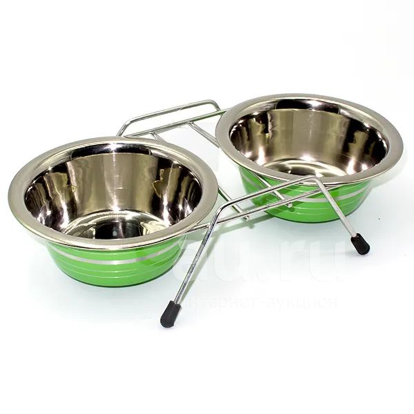 Набор: миска двойная цветная с полосой на подставке, предназначена для корма и воды. Имеет удобную форму чашечек, чтобы животное могло вылизывать их полностью, не прилагая усилий. Подставка оборудована нескользящими ножками.